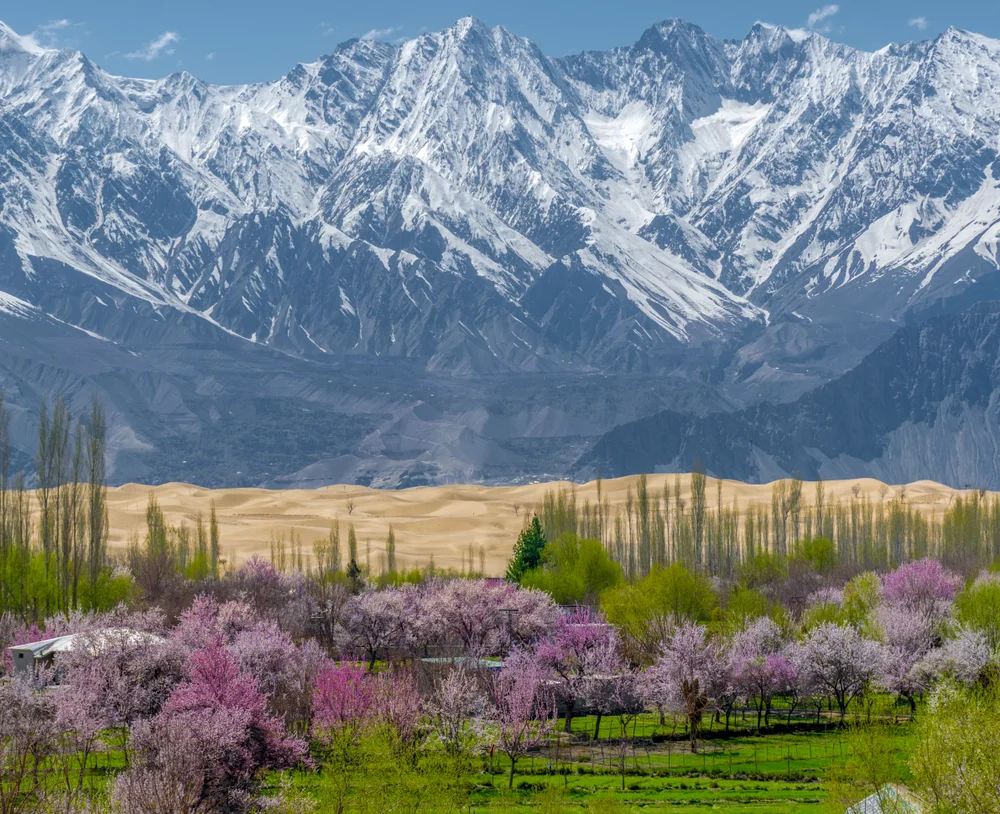 A spring tour of the Skardu Valley offers a unique and contrasting visual delight, as the rugged mountain terrain is softened by the arrival of the spring blossoms. From late March to late April, fruit trees in areas like the Shigar and Hushe valleys begin to bloom, providing a beautiful accent to the dramatic, snow-capped peaks.