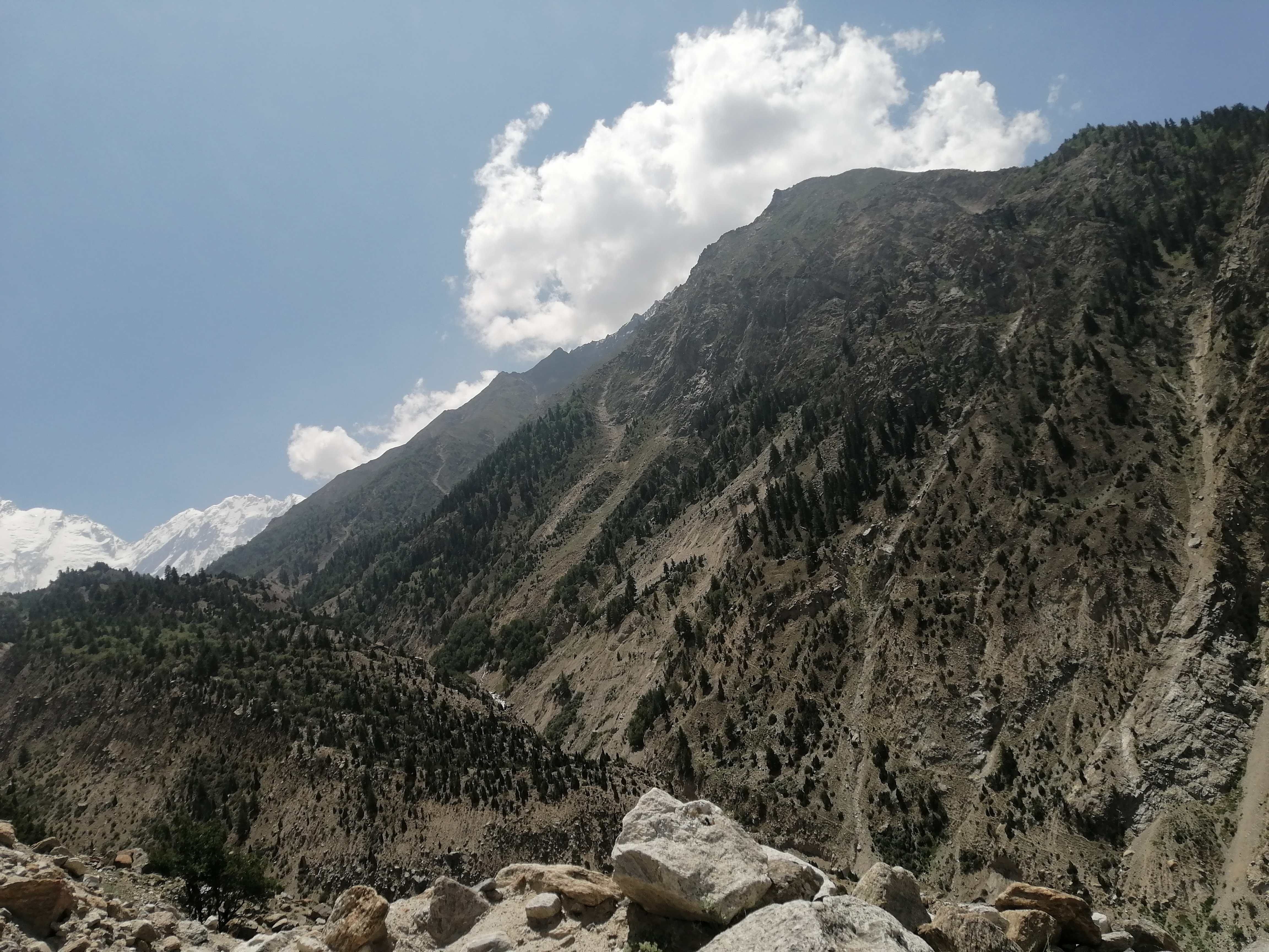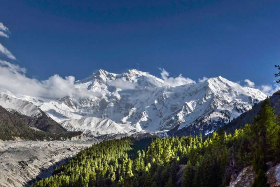 This trek leads to the base of the massive Rupal Face, considered the highest mountain wall in the world, with a 4,600-meter vertical rise from base to summit. The route follows the lush and tranquil Rupal Valley, offering stunning and intimate views of the "Killer Mountain" from its southern side. It is a demanding but rewarding journey for experienced trekkers, especially since it is less frequented by tourists than the more popular Fairy Meadows trek.